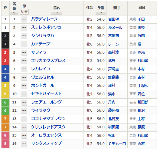 千田調教師は「2戦連続で厳しい競馬をしたので、なるべく疲れを残さないような調教。古馬相手でも通用すると思うし、外回りもプラスだが距離延長がどうか」と語った。