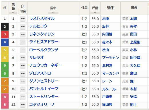 前走ルメール騎手が乗っていたゾロアストロはGⅢ 3着と悪くない成績でした。